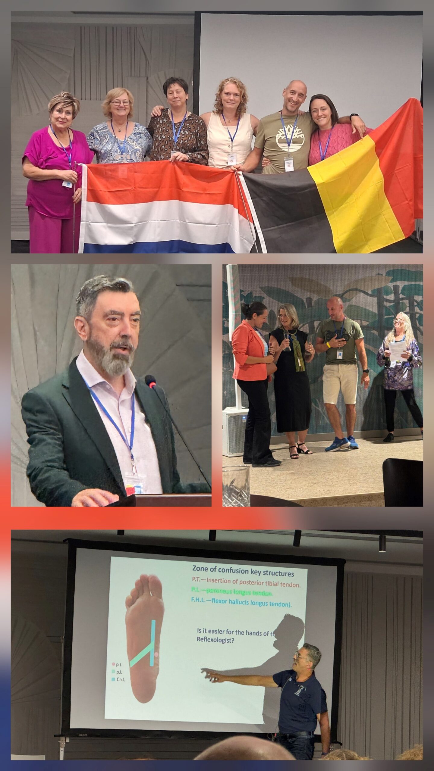 Tijdens dit congres hebben onze Belgische collega’s van de beroepsorganisatie BEVO Tamara Cobos-Rodriguez en Didier Vin een Ollie Baily Award mogen ontvangen voor al hun inzet voor de reflexzonetherapie.